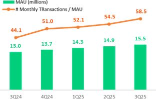 Yape reached 15.5 million Monthly Active Users (MAU), with operating leverage continuing to expand and accounting for 6.6% of Credicorp’s total risk-adjusted revenue.