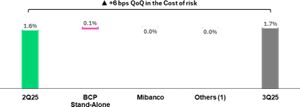 BCP reported solid profitability this quarter, backed by increasing margins; diversified sources of income; and a cost of risk level below that seen in 2024. NIM stood at 6.1%, driven mainly