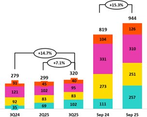 Net interest income (NII) rose 2.7% YoY, driven by a further strengthened funding mix and higher-yielding loan portfolio; and increased 2.0% QoQ. Net Interest Margin (NIM) reached 6.57%, expanding 14 bps YoY and 15 bps QoQ.