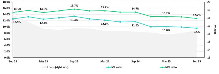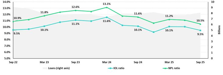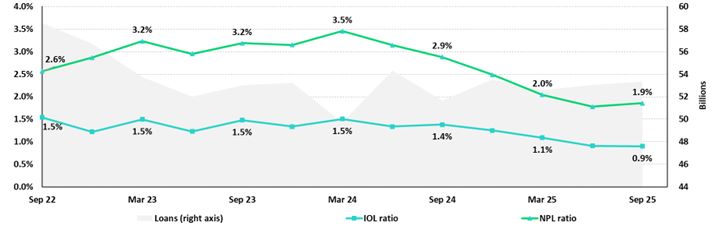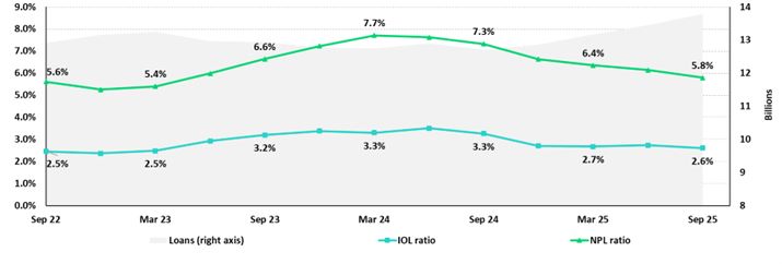 Efficiency ratio at 45.7% for 9M25, on track with full-year guidance. Operating Expenses rose 12.8% YoY in this period,