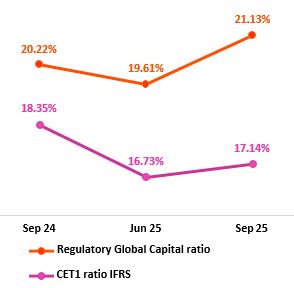 IFRS CET 1 Ratio at 13.17% for BCP and at 17.14% for Mibanco.